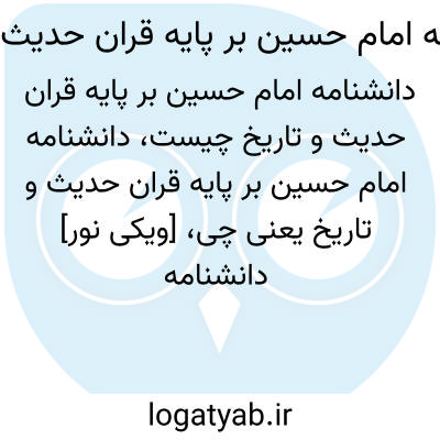 [ویکی نور] دانشنامه امام حسین(علیه السلام) بر پایه قرآن حدیث و تاریخ. دانشنامه امام حسین(ع) بر پایه قرآن، حدیث و تاریخ، اثر محمد محمدی ری شهری، با همکاری سید محمود طباطبایی نژاد و سید روح الله سید طبایی، در موضوع بررسی ابعاد مختلف زندگانی، شخصیت، قیام و شهادت امام حسین(ع) و حوادث و آموزه های مرتبط با آن، با بهره گیری از قرآن، حدیث و تاریخ می باشد.