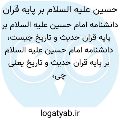 [ویکی نور] دانشنامه امام حسین علیه السلام بر پایه قرآن حدیث و تاریخ. دانشنامه امام حسین(ع)بر پایه قرآن، حدیث و تاریخ، اثر محمد محمدی ری شهری، با همکاری سید محمود طباطبایی نژاد و سید روح الله سید طبایی، در موضوع بررسی ابعاد مختلف زندگانی، شخصیت، قیام و شهادت امام حسین(ع)و حوادث و آموزه های مرتبط با آن، با بهره گیری از قرآن، حدیث و تاریخ می باشد.