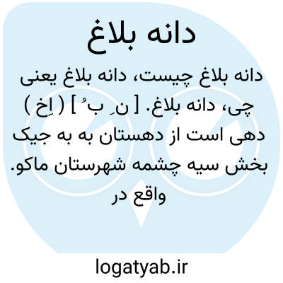 دانه بلاغ. [ ن ِ ب ُ ] ( اِخ ) دهی است از دهستان به به جیک بخش سیه چشمه شهرستان ماکو. واقع در 36هزارگزی جنوب سیه چشمه و هزارگزی شمال شوسه چشمه قره ضیاءالدین. دامنه است و سردسیر دارای 70 تن سکنه آب آن از چشمه و محصول آنجا غلات و شغل مردمان آن زراعت و گله داری و صنایع دستی اهالی آن جاجیم بافی و راه آنجا ارابه روست. ( از فرهنگ جغرافیایی ایران ج 4 ).