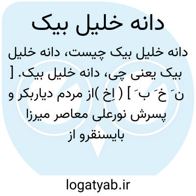 دانه خلیل بیک. [ ن َ خ َ ب َ ] ( اِخ )از مردم دیاربکر و پسرش نورعلی معاصر میرزا بایسنقرو از سرشناسان آن دیار بوده است و هموست که سلیمان بیک ترکان را در حصن کیفا بانتقام خون عمش کشت. و نیزرجوع به حبیب السیر چ کتابخانه خیام ج 3 ص 438 شود.