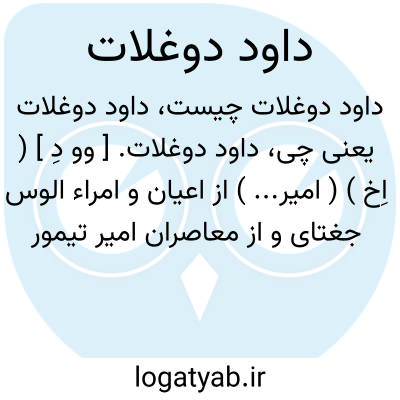 داود دوغلات. [ وو دِ ] ( اِخ ) ( امیر... ) از اعیان و امراء الوس جغتای و از معاصران امیر تیمور گورگان است و در تاجگذاری وی شرکت داشته است. ( حبیب السیر چ کتابخانه خیام ج 3 ص 388 و 419 ).
