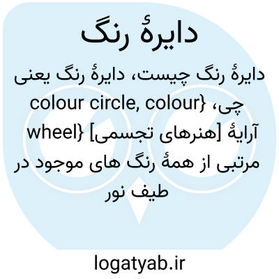 {colour circle, colour wheel} [هنرهای تجسمی] آرایۀ مرتبی از همۀ رنگ های موجود در طیف نور سفید بر روی یک دایره به گونه ای که رنگ های مکمل به طور قطری در مقابل هم قرار می گیرند