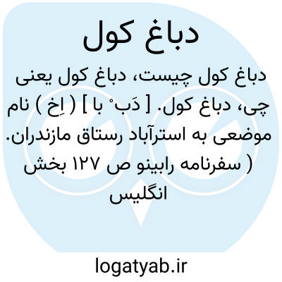دباغ کول. [ دَب ْ با ] ( اِخ ) نام موضعی به استرآباد رستاق مازندران. ( سفرنامه رابینو ص 127 بخش انگلیس ).