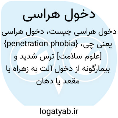 {penetration phobia} [علوم سلامت] ترس شدید و بیمارگونه از دخول آلت به زهراه یا مقعد یا دهان