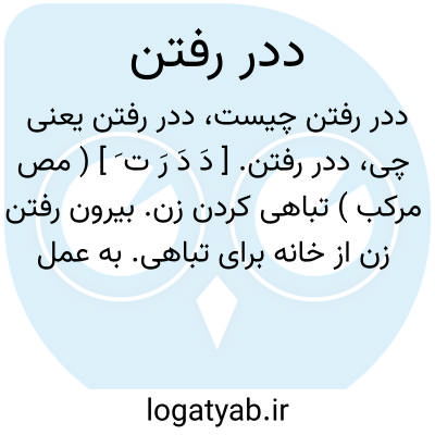 ددر رفتن. [ دَ دَ رَ ت َ ] ( مص مرکب ) تباهی کردن زن. بیرون رفتن زن از خانه برای تباهی. به عمل ناشایست شدن ِ زن. به تبهکاری شدن زن. به کار بد رفتن زن. بیرون رفتن زن از خانه برای اعمال بد. || در تداول اطفال، از خانه به کوچه یا خیابان رفتن برای گردش.