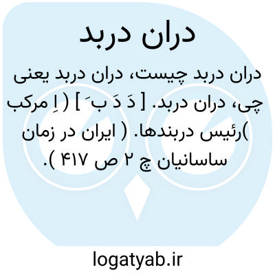 دران دربد. [ دَ دَ ب َ ] ( اِ مرکب )رئیس دربندها. ( ایران در زمان ساسانیان چ 2 ص 417 ).