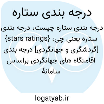 {stars ratings} [گردشگری و جهانگردی] درجه بندی اقامتگاه های جهانگردی براساس سامانۀ ستاره (star system ) که نشان دهندۀ سطح خدمات و میزان تسهیلات و نحوۀ رسیدگی به مهمان است