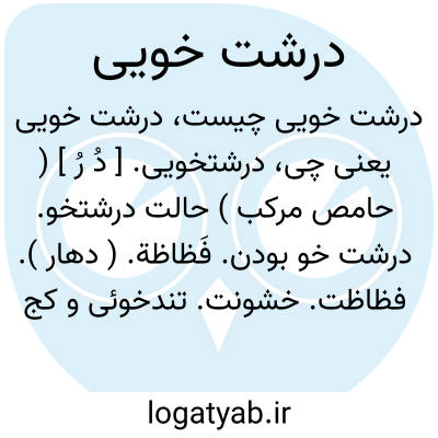 درشتخویی. [ دُ رُ ] ( حامص مرکب ) حالت درشتخو. درشت خو بودن. فَظاظة. ( دهار ). فظاظت. خشونت. تندخوئی و کج خلقی. ( ناظم الاطباء ): غایت نادانی است... معاشقت زنان به درشتخویی. ( کلیله و دمنه ).