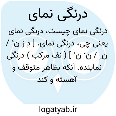 درنگی نمای. [ دِ رَ ن ُ / ن ِ / ن َ ن ُ ] ( نف مرکب ) درنگی نماینده. آنکه بظاهر متوقف و آهسته و کند جلوه کند. بردباری و شکیبائی و متانت نشان دهنده. مقابل عجول و شتابزده: اگر عیار مباعدت و مساعدت این عجول درنگی نمای... نبودی... در اندک روزگاری از آن فراغت روی نمودی. ( مرزبان نامه ص 10 ).