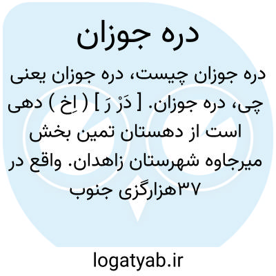 دره جوزان. [ دَرْ رَ ] ( اِخ ) دهی است از دهستان تمین بخش میرجاوه شهرستان زاهدان. واقع در 37هزارگزی جنوب باختری میرجاوه و 13هزارگزی باختر راه فرعی خاش به میرجاوه، با 100 تن سکنه. آب آن از چشمه و قنات و راه آن مالرو است. ساکنین آن از طایفه ریگی هستند. ( از فرهنگ جغرافیایی ایران ج 8 ).
