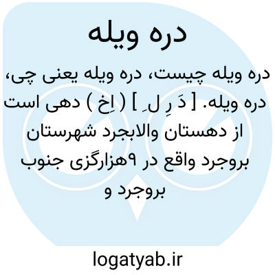دره ویله. [ دَ رِ ل ِ ] ( اِخ ) دهی است از دهستان والابجرد شهرستان بروجرد واقع در 9هزارگزی جنوب بروجرد و 3 هزارگزی باختر راه شوسه بروجرد به دورود. آب آن از قنات و راه آن مالرو است. ( از فرهنگ جغرافیایی ایران ج 6 ).