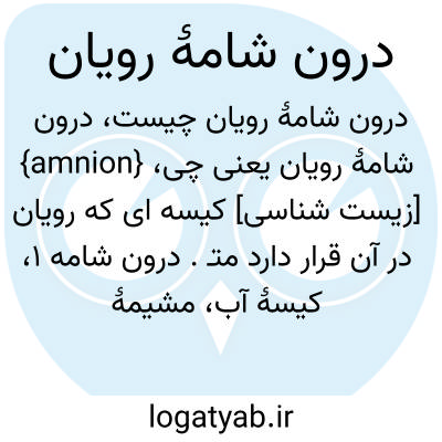 {amnion} [زیست شناسی] کیسه ای که رویان در آن قرار دارد متـ. درون شامه 1، کیسۀ آب، مشیمۀ درونی