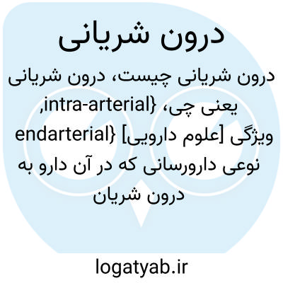 {intra-arterial, endarterial} [علوم دارویی] ویژگی نوعی دارورسانی که در آن دارو به درون شریان تزریق می شود متـ. شریانی 1