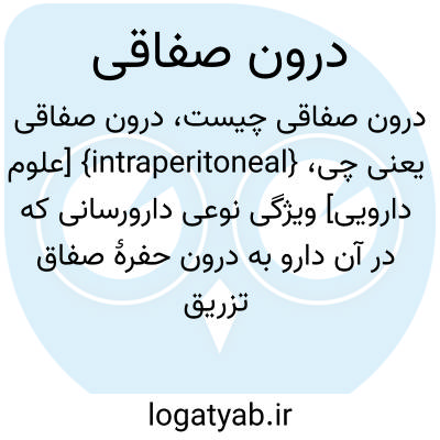 {intraperitoneal} [علوم دارویی] ویژگی نوعی دارورسانی که در آن دارو به درون حفرۀ صفاق تزریق می شود متـ. صفاقی