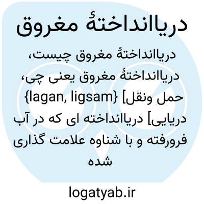 {lagan, ligsam} [حمل ونقل دریایی] دریاانداخته ای که در آب فرورفته و با شناوه علامت گذاری شده است تا بازیافت شود