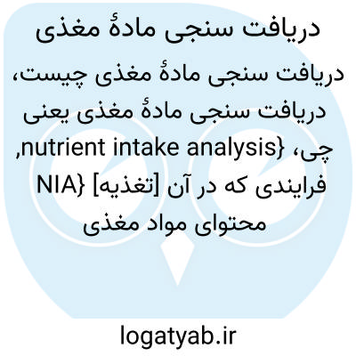 {nutrient intake analysis, NIA} [تغذیه] فرایندی که در آن محتوای مواد مغذی ازطریق سنجش میزان دریافت مواد غذایی در یک دورۀ زمانی معین ارزیابی میشود