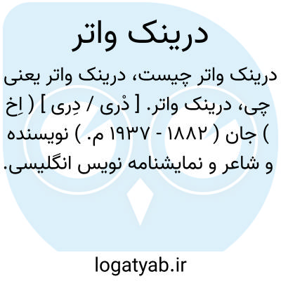 درینک واتر. [ دْری / دِری ] ( اِخ ) جان ( 1882 - 1937 م. ) نویسنده و شاعر و نمایشنامه نویس انگلیسی. وی نویسنده ای پرکار بود. شهرتش بسبب نمایشنامه هائی است که در باب وقایع تاریخی نوشته از جمله ابراهام لینکلن ( 1918 م. ) ماری استوارت ( 1921 ) آلیور کرامول ( 1921 )رابرت، ا.لی ( 1923 ) رابرت برنز ( 1925 ). کمدی «پرنده ای در دست » به سال 1927 م. بمعرض نمایش گذاشته شد و موفقیت بسیار یافت. آثار دیگرش زندگی نامه ها، یک رمان و مجموعه اشعار اوست. ( از دائرةالمعارف فارسی ).