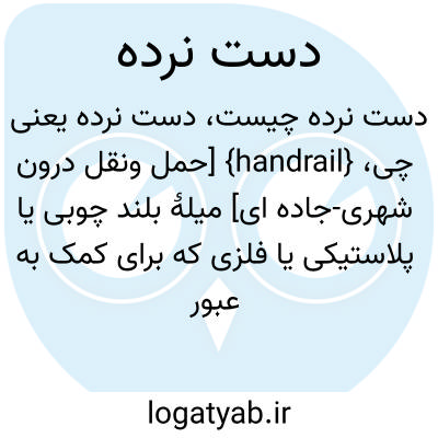 {handrail} [حمل ونقل درون شهری-جاده ای] میلۀ بلند چوبی یا پلاستیکی یا فلزی که برای کمک به عبور عابران از پل و بام و ایوان و راه پله بر روی نرده نصب می شود