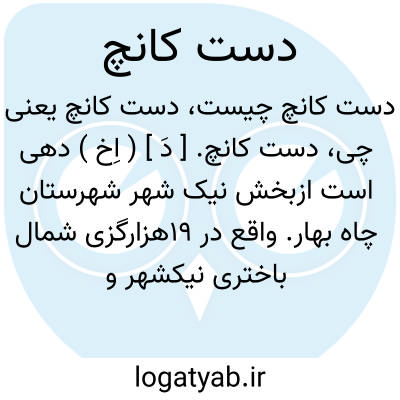 دست کانچ. [ دَ ] ( اِخ ) دهی است ازبخش نیک شهر شهرستان چاه بهار. واقع در 19هزارگزی شمال باختری نیکشهر و 12هزارگزی باختر راه شوسه ایرانشهر به چاه بهار، با 100 تن سکنه. آب آن از رودخانه و راه آن مالرو است. ( از فرهنگ جغرافیائی ایران ج 8 ).