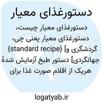 {standard recipe} [گردشگری و جهانگردی] دستور طبخ آزمایش شدۀ هریک از اقلام صورت غذا برای تعداد معینی از افراد
