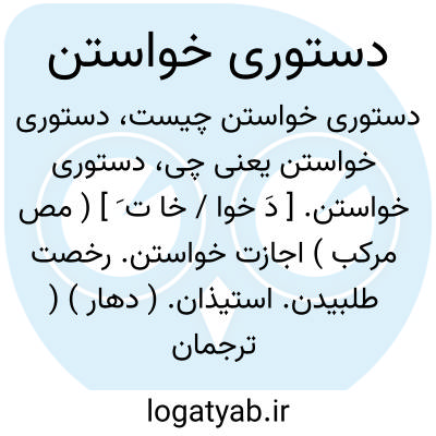 دستوری خواستن. [ دَ خوا / خا ت َ ] ( مص مرکب ) اجازت خواستن. رخصت طلبیدن. استیذان. ( دهار ) ( ترجمان القرآن ). استیناس. ( یادداشت مرحوم دهخدا ). استجازه کردن. اجازه طلبیدن. اذن خواستن. استجازه: همه به روم بازآمدند و از وی دستوری خواستند که با وی بروند و با شاپور حرب کنند. ( ترجمه طبری بلعمی ).
