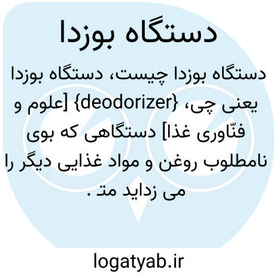 {deodorizer} [علوم و فنّاوری غذا] دستگاهی که بوی نامطلوب روغن و مواد غذایی دیگر را می زداید متـ. دستگاه بوگیر