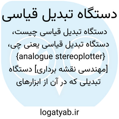 {analogue stereoplotter} [مهندسی نقشه برداری] دستگاه تبدیلی که در آن از ابزارهای مکانیکی و نوری برای توجیه و ترسیم عوارض و تولید خطوط تراز استفاده می کنند