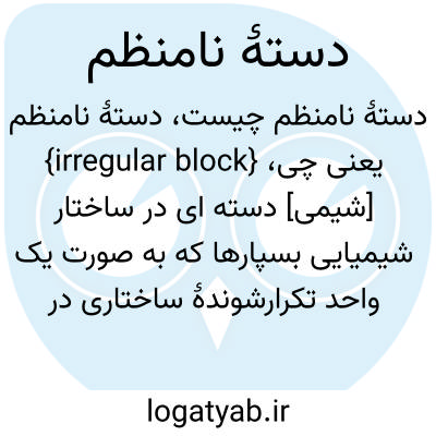 {irregular block} [شیمی] دسته ای در ساختار شیمیایی بسپارها که به صورت یک واحد تکرارشوندۀ ساختاری در یک توالی آرایشمند قرار ندارد