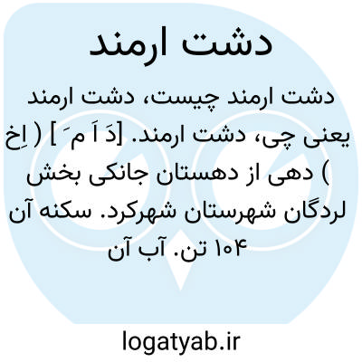 دشت ارمند. [دَ اَ م َ ] ( اِخ ) دهی از دهستان جانکی بخش لردگان شهرستان شهرکرد. سکنه آن 104 تن. آب آن از چشمه. محصول آنجا غلات است. ( از فرهنگ جغرافیائی ایران ج 10 ).