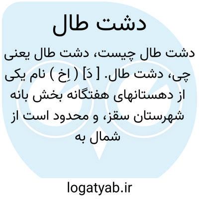 دشت طال. [ دَ] ( اِخ ) نام یکی از دهستانهای هفتگانه بخش بانه شهرستان سقز، و محدود است از شمال به دهستان نمشیر، از جنوب به دهستان های پشت آربابا و آلوت، از مشرق به دهستان سبدلو، از مغرب به رودخانه زاب کوچک که بین سردشت و بانه واقع شده است. منطقه دهستان کوهستان جنگلی و هوای آن سردسیر و نسبت به سایر دهستان های بانه معتدل می باشد. محصول عمده دهستان انواع محصول جنگلی مانند مازوج، گزانگبین، سقز، چوب زغال و مختصر غلات و لبنیات است. بلندترین کوه دهستان که تقریباً در وسط دهستان واقع شده کوه معروف به هفتوان میباشد که از سطح اقیانوس 1735 متر مرتفعتر است. عمیق ترین محل دهستان آبادی ویسک در کنار رودخانه زاب است که 1100متر ارتفاع دارد. رودخانه سیوچ که از آبادی سیوچ سرچشمه می گیرد در طول دهستان جاری است و به رودخانه زاب کوچک منتهی میگردد. دهستان دشت طال از 26 آبادی تشکیل شده و سکنه آن در حدود دو هزار تن است و قرای مهم آن بشرح زیر است: سیوچ، سیاه حومه، نماز گاه، زرواو، یقعوب آباد. ( از فرهنگ جغرافیائی ایران ج 5 ).