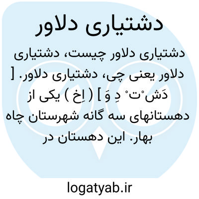 دشتیاری دلاور. [ دَش ْت ْ دِ وَ ] ( اِخ ) یکی از دهستانهای سه گانه شهرستان چاه بهار. این دهستان در باختر بخش واقع است. منطقه ای است جلگه، هوای آن مالاریائی و آب مشروب دهستان از باران است. رودخانه خواجه در این دهستان از کوهستان قصرقند سرچشمه میگیرد و آبادیهای اطراف خود را ( در بخش قصرقند ) مشروب میسازد. فقط در موقع بارندگی ( در صورتی که باران بقدر کافی باشد ) آب این رودخانه به این دهستان میرسد. اگر در موقع بذرافشان در این دهستان بارندگی شود این دهستان بسیار خوب میشود ولی در بعضی سالها باران عقب میافتد بطوری که اهالی بر اثر نداشتن آب و علف جهت حیوانات بیشتر به خارج شهرستان کوچ میکنند. محصول عمده دهستان بطوری که در بالا ذکر گردید در صورت آمدن باران ِ بموقع غلات، حبوب، پنبه، ذرت و لبنیات است. شغل اهالی زراعت و گله داری است. و بیشتر اهالی برای خرید وفروش به پاکستان آمد و رفت مینمایند. این دهستان از42 آبادی بزرگ و کوچک تشکیل گردیده و جمعیت آن در حدود 10000 تن است. ( از فرهنگ جغرافیایی ایران ج 8 ).