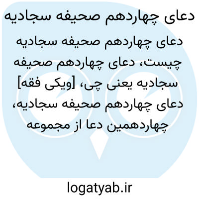 [ویکی فقه] دعای چهاردهم صحیفه سجادیه، چهاردهمین دعا از مجموعه دعاهای صحیفه سجادیه از امام سجاد (ع). این دعا در ۱۶ فراز تنظیم شده و موضوع اصلی آن دادخواهی از ستمگران و ستمی است که به حضرت وارد شده است. • خبر شِکوه کنندگان بر خدا پوشیده نیست و او برای آگاهی بر سرگذشت ستمدیدگان نیازی به شاهد ندارد.خود شاهد بر آن است این دعا در این آثار شرح شده است: ← شرح های فارسی ... [ویکی شیعه] دعای چهاردهم صحیفه سجادیه، از دعا های صحیفه سجادیه امام سجاد (ع). این دعا در ۱۶ فراز تنظیم شده و موضوع اصلی آن دادخواهی از ستمگران و ستمی است که به حضرت وارد شده است. این دعا در این آثار شرح شده است: آثاری که لغات دعا را توضیح داده و معنا کرده اند: