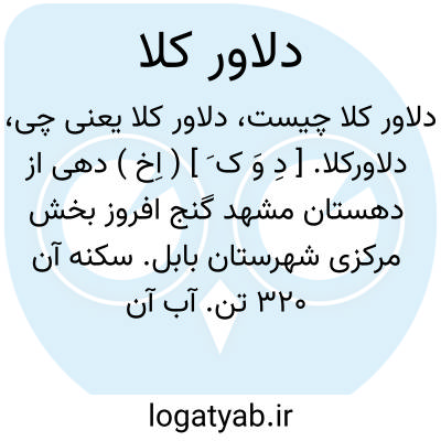 دلاورکلا. [ دِ وَ ک َ ] ( اِخ ) دهی از دهستان مشهد گنج افروز بخش مرکزی شهرستان بابل. سکنه آن 320 تن. آب آن ازرودخانه بابل و چاه و محصول آن برنج، صیفی، پنبه، غلات و حبوبات است. ( از فرهنگ جغرافیایی ایران ج 3 ). دلاورکلا. [ دِ وَ ک َ ] ( اِخ ) دهی از دهستان ساس کلام بخش مرکزی شهرستان بابل. سکنه آن 285 تن. آب آن از رودخانه کاری و محصول آن برنج، غلات، پنبه، صیفی و حبوبات. ( از فرهنگ جغرافیایی ایران ج 3 ).