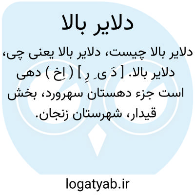 دلایر بالا. [ دَ ی ِ رِ ] ( اِخ ) دهی است جزء دهستان سهرورد، بخش قیدار، شهرستان زنجان. سکنه آن 206 تن. آب آن از زه آب رودخانه و محصول آن غلات و انگور است. ( از فرهنگ جغرافیایی ایران ج 2 ).