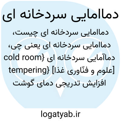 دماآمایی سردخانه ای {cold room tempering} [علوم و فنّاوری غذا] افزایش تدریجی دمای گوشت منجمد در بخشی از سردخانه که دمای آن بالای صفر است