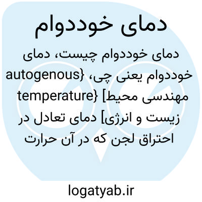 {autogenous temperature} [مهندسی محیط زیست و انرژی] دمای تعادل در احتراق لجن که در آن حرارت تولیدی با اُفت حرارت برابر است و سبب میشود که احتراق به صورت خوددوام انجام شود