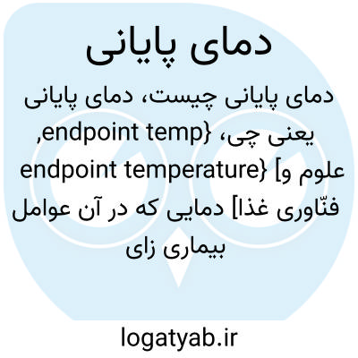 {endpoint temp, endpoint temperature} [علوم و فنّاوری غذا] دمایی که در آن عوامل بیماری زای فراوردۀ غذایی، به خصوص گوشتی، از بین میرود