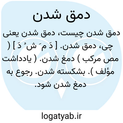 دمق شدن. [ دَ م َ ش ُ دَ ] ( مص مرکب ) دمغ شدن. ( یادداشت مؤلف ). بشکسته شدن. رجوع به دمغ شدن شود.