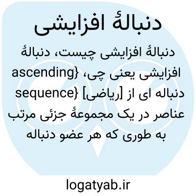 {ascending sequence} [ریاضی] دنباله ای از عناصر در یک مجموعۀ جزئی مرتب به طوری که هر عضو دنباله ناکمتر از عضو قبل باشد