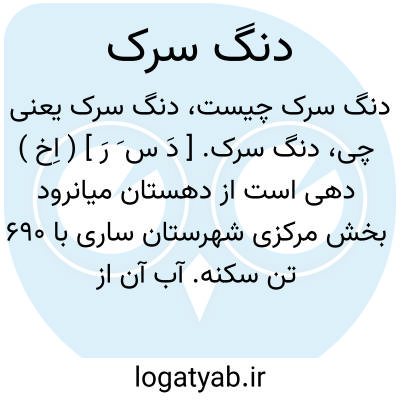 دنگ سرک. [ دَ س َ رَ ] ( اِخ ) دهی است از دهستان میانرود بخش مرکزی شهرستان ساری با 690 تن سکنه. آب آن از رودخانه نکا و راه آن اتومبیلرو است. ( از فرهنگ جغرافیایی ایران ج 3 ).