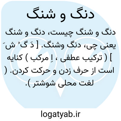 دنگ وشنگ. [ دَ گ ُ ش َ ] ( ترکیب عطفی، اِ مرکب ) کنایه است از حرف زدن و حرکت کردن. ( لغت محلی شوشتر ).