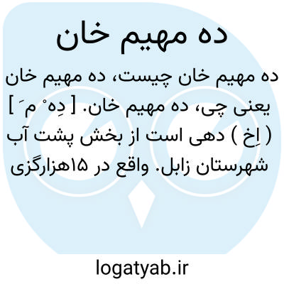 ده مهیم خان. [ دِه ْ م َ ] ( اِخ ) دهی است از بخش پشت آب شهرستان زابل. واقع در 15هزارگزی شمال باختری بنجار. سکنه آن 199 تن. آب آن از رودخانه هیرمند تأمین می شود. ( از فرهنگ جغرافیایی ایران ج 8 ).