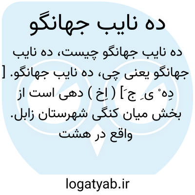 ده نایب جهانگو. [ دِه ْ ی ِ ج َ] ( اِخ ) دهی است از بخش میان کنگی شهرستان زابل. واقع در هشت هزارگزی جنوب خاوری ده دوست محمد نزدیک مرز افغانستان. سکنه آن 150 تن. آب آن از رودخانه هیرمند تأمین می شود. ساکنین از طایفه ناروئی هستند. ( از فرهنگ جغرافیایی ایران ج 8 ).