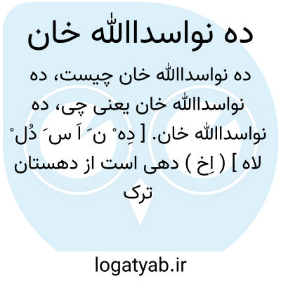 ده نواسداﷲ خان. [ دِه ْ ن َ اَ س َ دُل ْ لاه ] ( اِخ ) دهی است از دهستان ترک شهرستان ملایر. واقع در 45هزارگزی شمال باختری شهر ملایر. سکنه آن 4087 تن. آب آن از چشمه تأمین می شود. ( از فرهنگ جغرافیایی ایران ج 5 ).