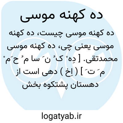 ده کهنه موسی محمدتقی. [ دِه ْ ک ُ ن َ سا م ُ ح َم ْ م َ ت َ ] ( اِخ ) دهی است از دهستان پشتکوه بخش اردل شهرستان شهرکرد. واقع در 11هزارگزی جنوب باختری اردل دارای 226 تن سکنه می باشد. آب آن از رودخانه کوهرنگ تأمین می شود. ( از فرهنگ جغرافیایی ایران ج 10 ).