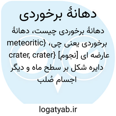 {meteoritic crater, crater} [نجوم] عارضه ای دایره شکل بر سطح ماه و دیگر اجسام صُلب منظومۀ شمسی که سطحی فرورفته و لبه ای برآمده دارد و ناشی از برخورد سنگ های سرگردان آسمانی است متـ. دهانه 3