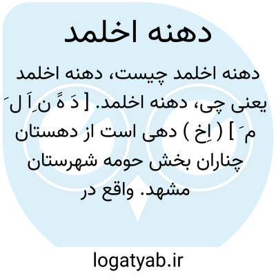 دهنه اخلمد. [ دَ هََ ن ِاَ ل َ م َ ] ( اِخ ) دهی است از دهستان چناران بخش حومه شهرستان مشهد. واقع در 76هزارگزی شمال باختری مشهد با 348 تن سکنه. ( از فرهنگ جغرافیایی ایران ج 9 ).
