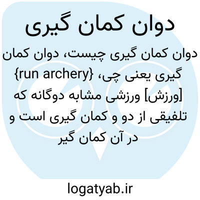 {run archery} [ورزش] ورزشی مشابه دوگانه که تلفیقی از دو و کمان گیری است و در آن کمان گیر پس از پرتاب یک رشته تیر، معمولاً سه تیر، مسافتی را می دود تا به هدف بعدی برسد