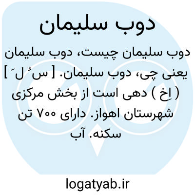 دوب سلیمان. [ س ُ ل َ ] ( اِخ ) دهی است از بخش مرکزی شهرستان اهواز. دارای 700 تن سکنه. آب آن از چاه است. ( از فرهنگ جغرافیایی ایران ج 6 ).