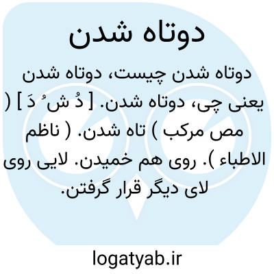 دوتاه شدن. [ دُ ش ُ دَ ] ( مص مرکب ) تاه شدن. ( ناظم الاطباء ). روی هم خمیدن. لایی روی لای دیگر قرار گرفتن. غرض. تمغج. انقعاص؛ دوتاه شدن چیزی. ( منتهی الارب ). || خمیدن. خمیده شدن. خمیده پشت گردیدن. ( یادداشت مؤلف ):